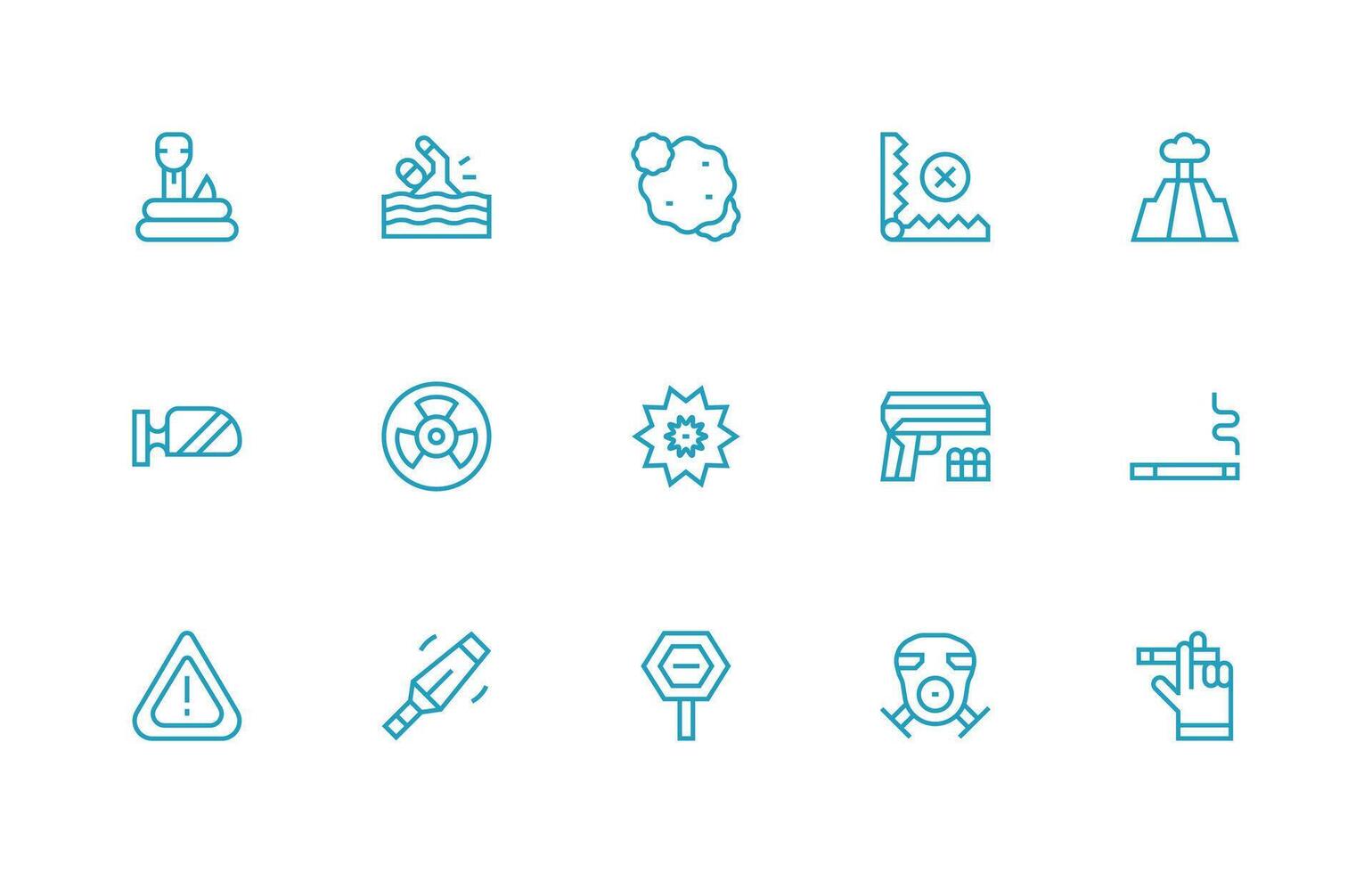 Danger Icon Set with 15 Regular Line Graphics Multi-Purpose Icon Pack for Templates vector