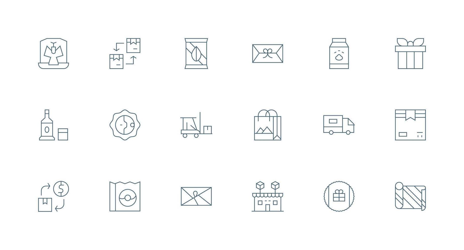 Package Icon Collection with 18 Minimal Line Designs Complete Icon Set for Mobile Apps Free Vector
