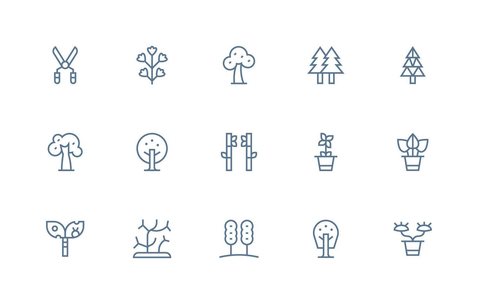 Foliage Icon Set with 15 Regular Line Graphics Organized Icon Pack for Quick Access vector