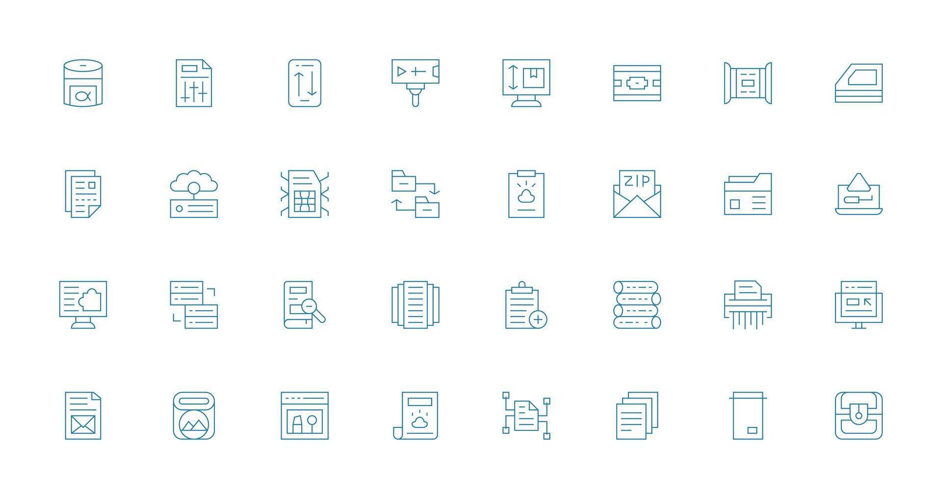 File Management featuring 32 Icons in Thin Line Design Icon Set for Apps vector