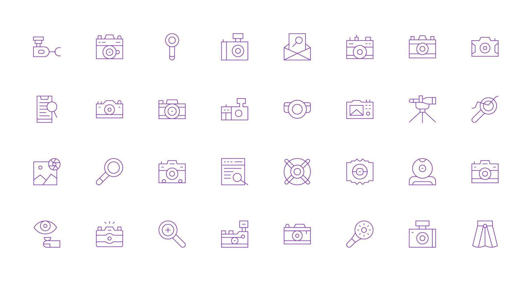 32 Icons for Lens in Thin Line Format All Device Compatible Icon Set vector