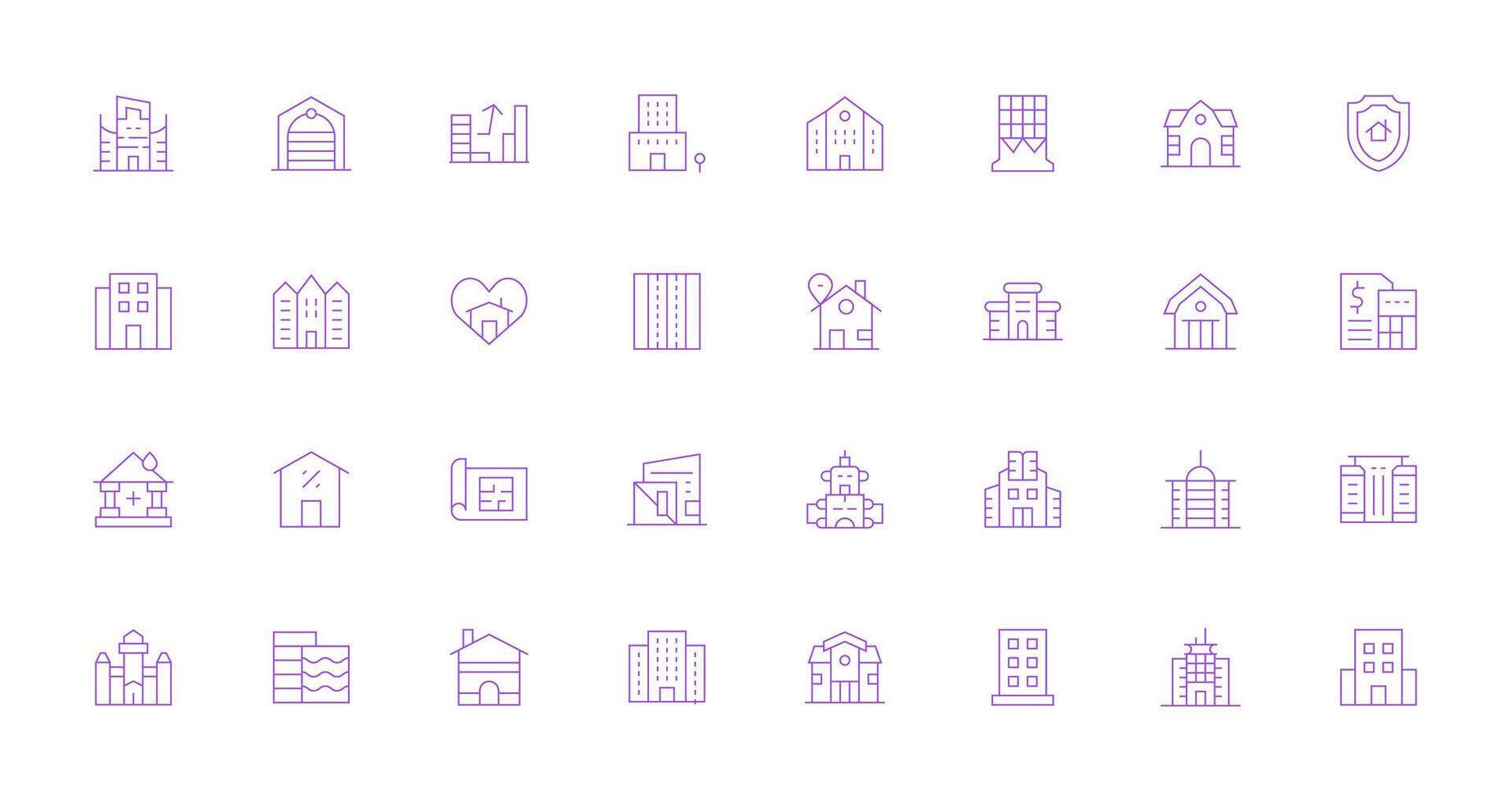 Property Set with 32 Thin Line Icons Multi-Style Icons for Creative Projects Free Vector