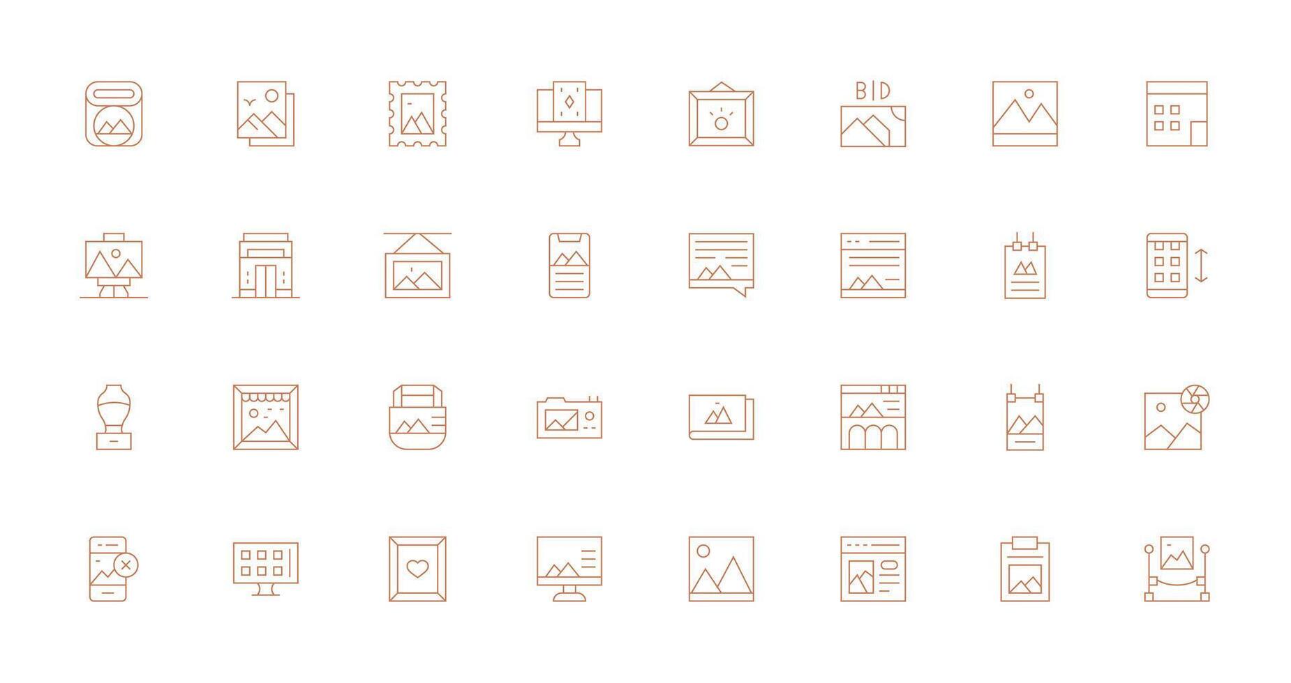 32 Thin Line Vectors for Gallery Theme Reusable Icon Set Free Vector