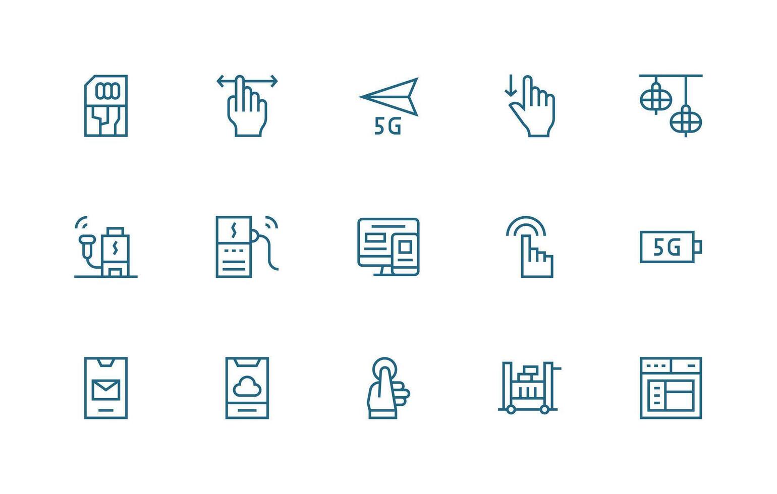 Mobile featuring 15 Icons in Regular Line Design Clear and Concise Icon Set Collection vector