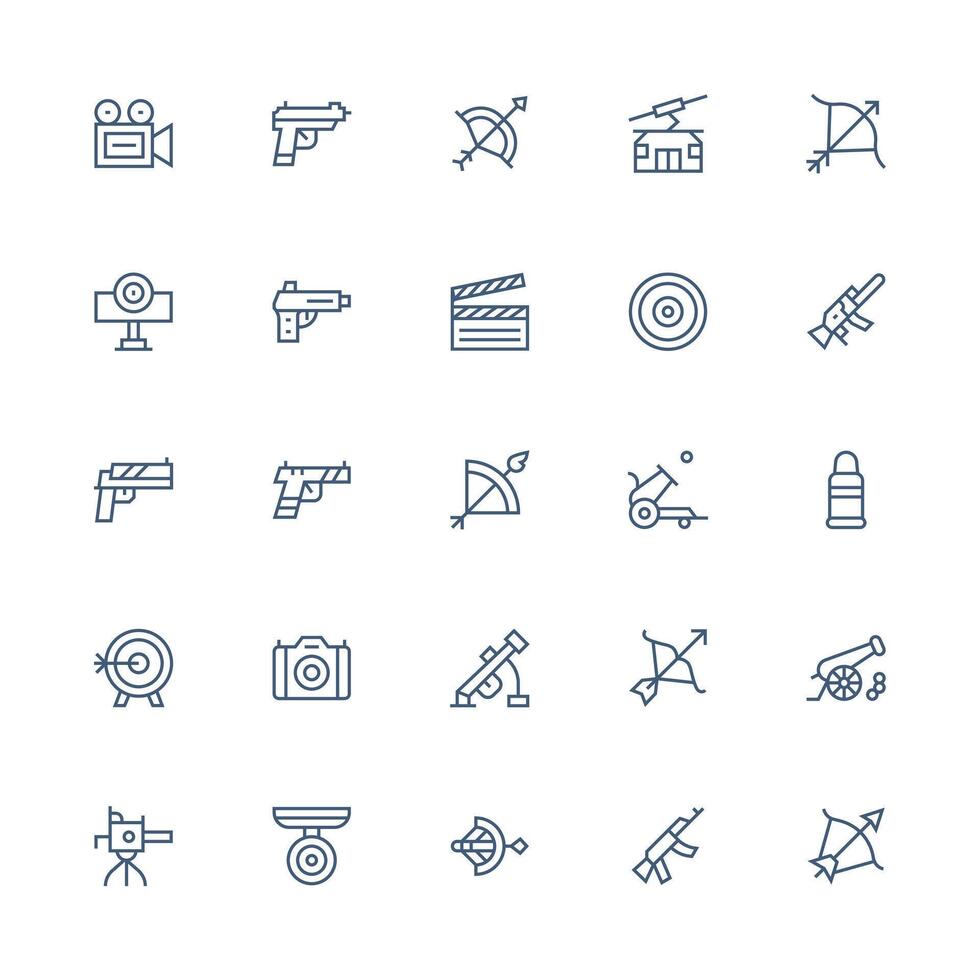Shooting Icon Set with 25 Medium Stroke Outline Graphics Multi-Style Icons for Creative Projects Free Vector
