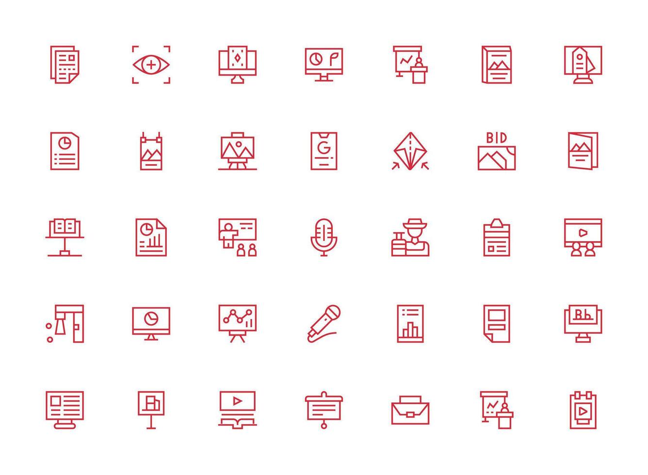 Presentation Set with 35 Regular Clean Line Icons Icon Collection Set Free Vector