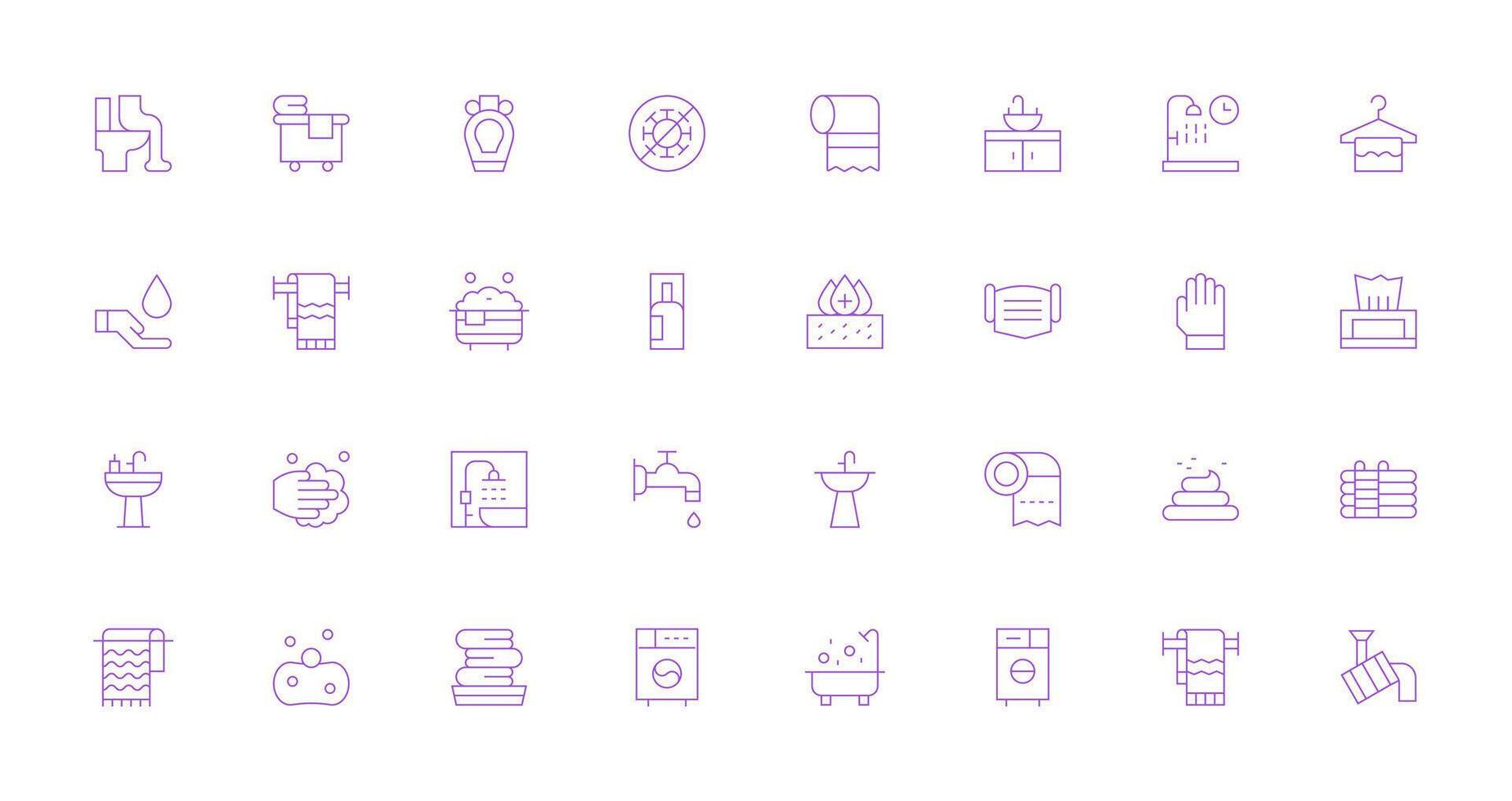 Cleanliness Set with 32 Thin Line Icons Icon Set for Web Free Vector