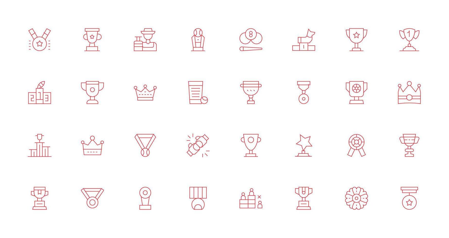 Winner Icon Set with 32 Thin Line Graphics Core Icon Collection for Daily Tasks Free Vector