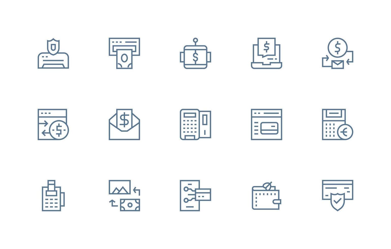 Regular Line Style Financial Transaction Icons with 15 Vectors Scalable Icons for Cross-Platform Interfaces