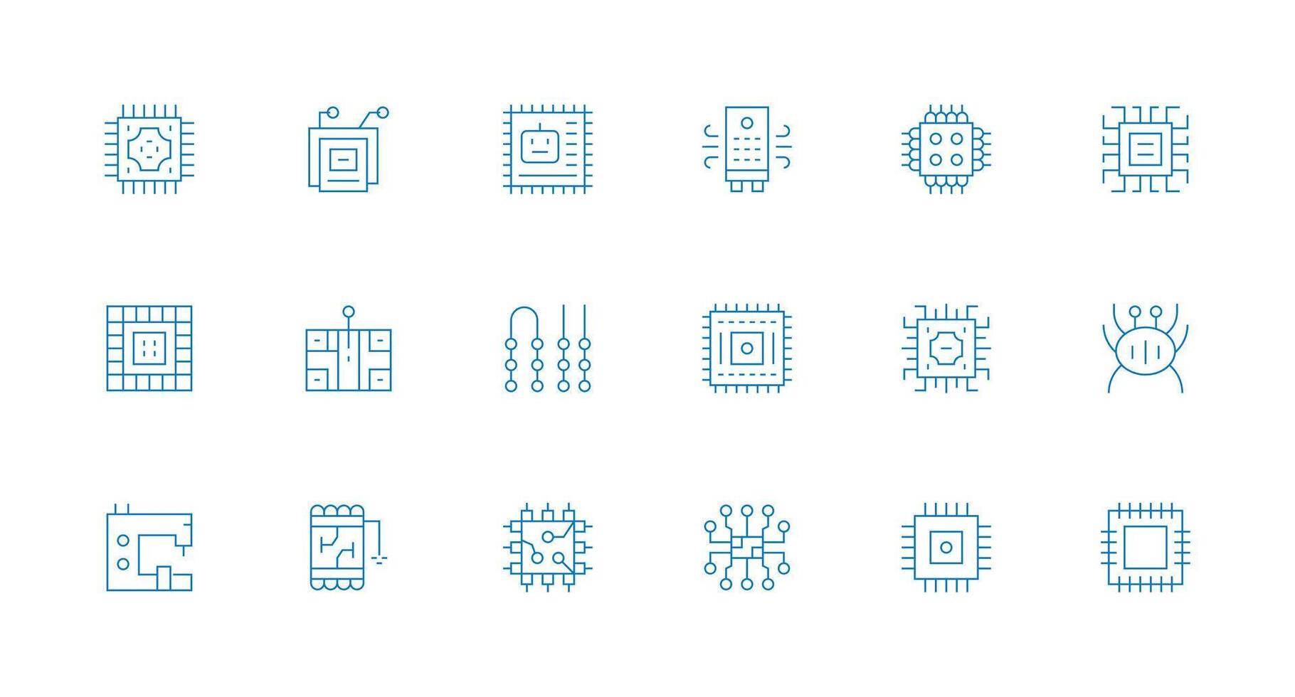 18 Icons for Integrated Circuit in Minimal Line Format Neutral Style Icons for Any Project Free Vector