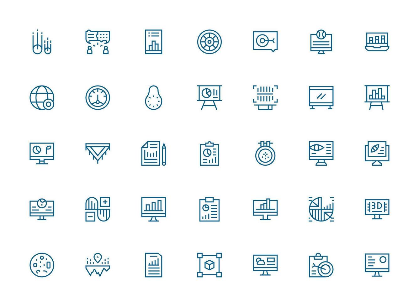 Visualization featuring 35 Icons in Regular Clean Line Design Functional Icon Series vector