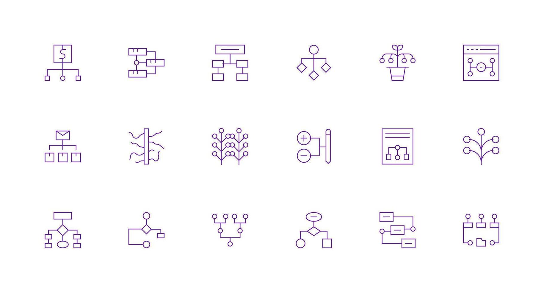 18 Minimal Line Icons for Branching Graphics Scalable Icons for Cross-Platform Interfaces vector