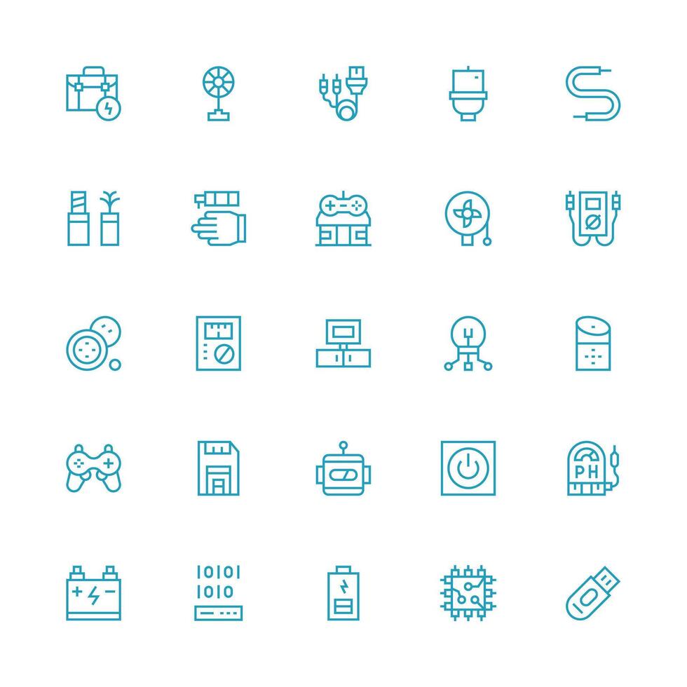 Electronics Design Icons featuring 25 in Medium Stroke Outline Style Flexible Icon System for Web Interfaces vector