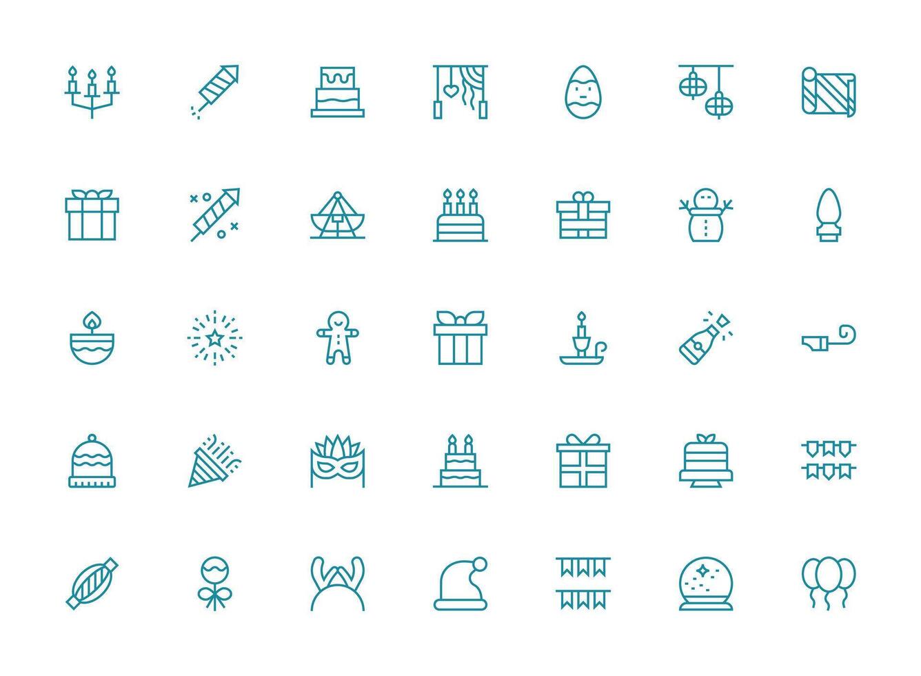 Festive Set with 35 Regular Clean Line Icons Minimal Icon Set for Interface Projects vector