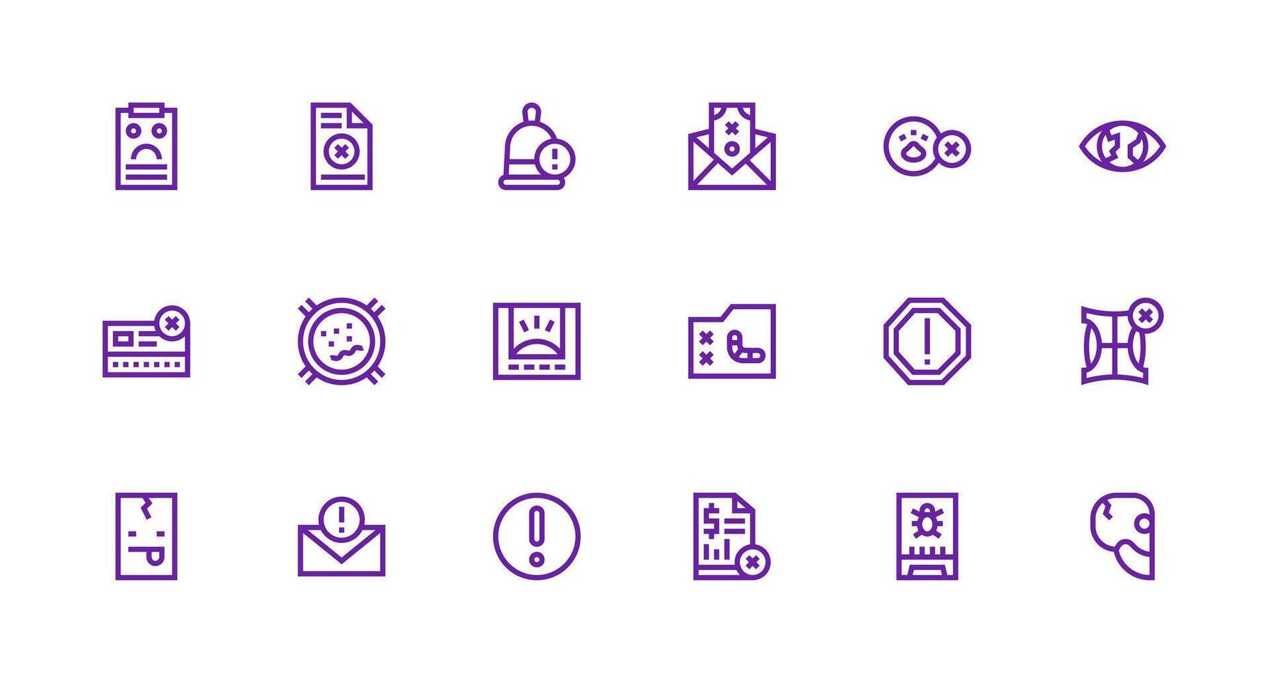 Error Message Design Icons featuring 18 in Strong Stroke Line Style Universal Icon Pack Free Vector