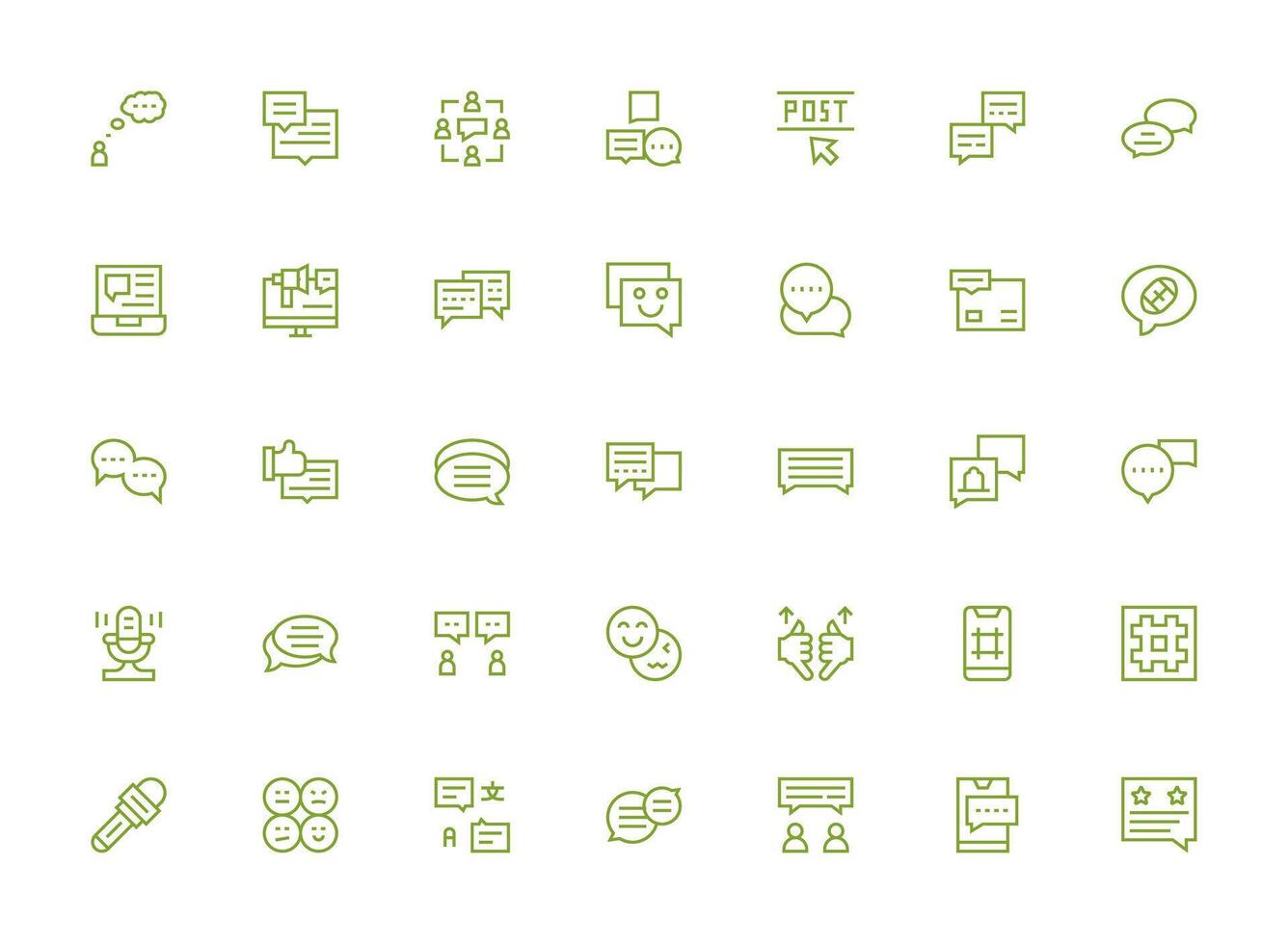 35 Regular Clean Line Icons for Comment Graphics Full Icon Library for UI Designers vector
