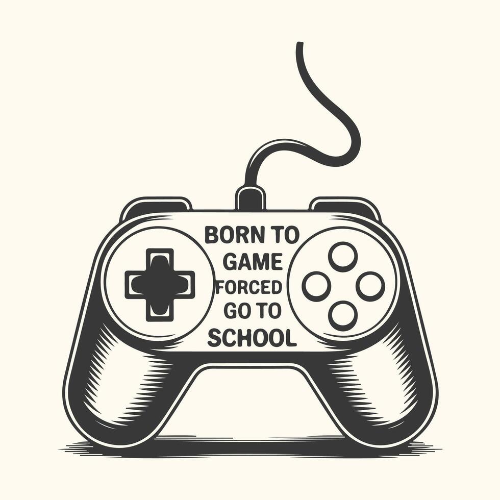 Art of born to game forced to go to school text with game controller clipart Pro Vector