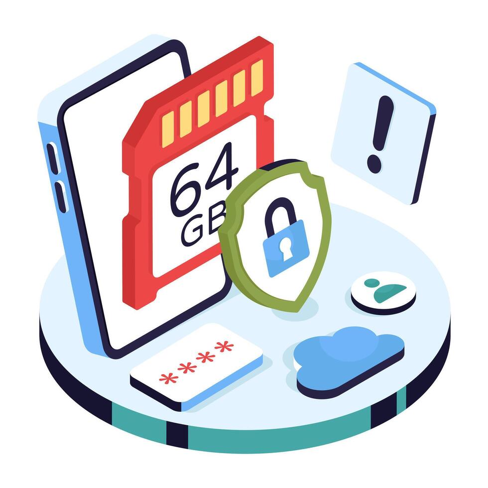 Protect Your Data with 64GB Memory Card and Security Pro Vector