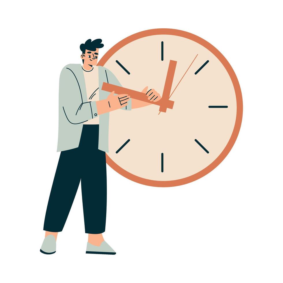 Time Management with Man Character with Clock Organizing Efficient Business Process Illustration Pro Vector