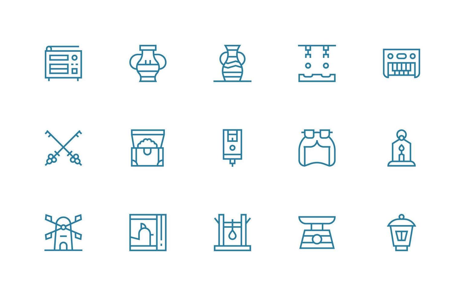 Old Design Icons featuring 15 in Regular Line Style Quick Access Icons for UI Development vector