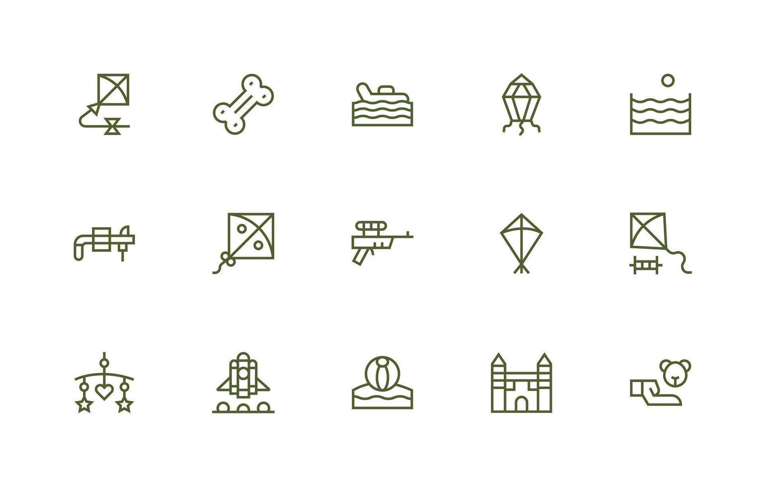 Toy Set with 15 Regular Line Icons Basic Icon Series Free Vector