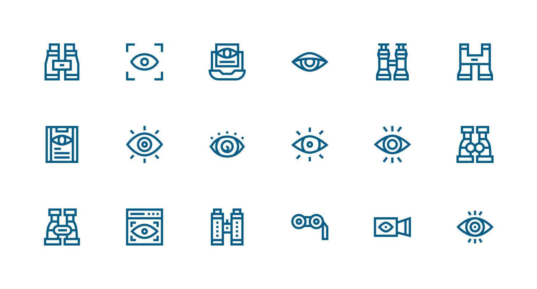 Observe Icon Set with 18 Strong Stroke Line Graphics Neatly Designed Icons for Web Platforms Free Vector