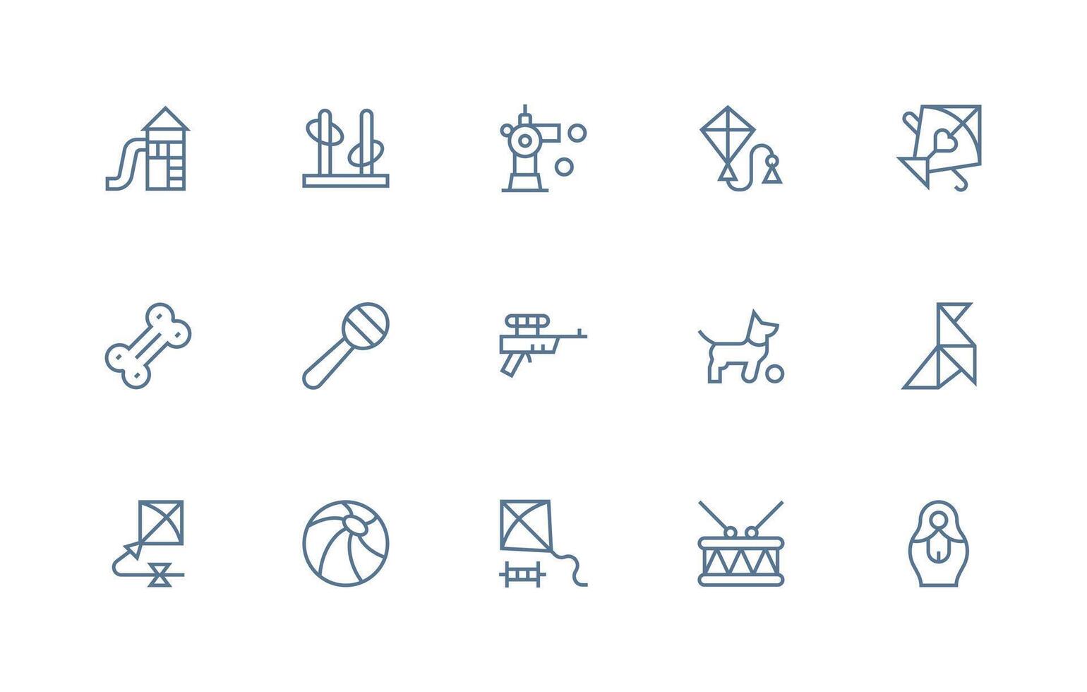 Toy Design Icons featuring 15 in Regular Line Style UI Icon Set vector