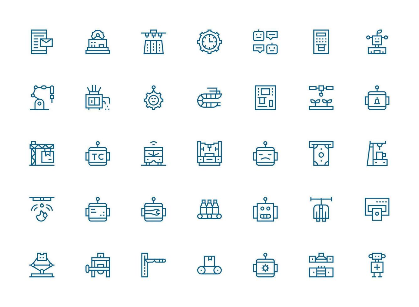Automated featuring 35 Icons in Regular Clean Line Design Customizable Icon Series for Mobile Screens Free Vector