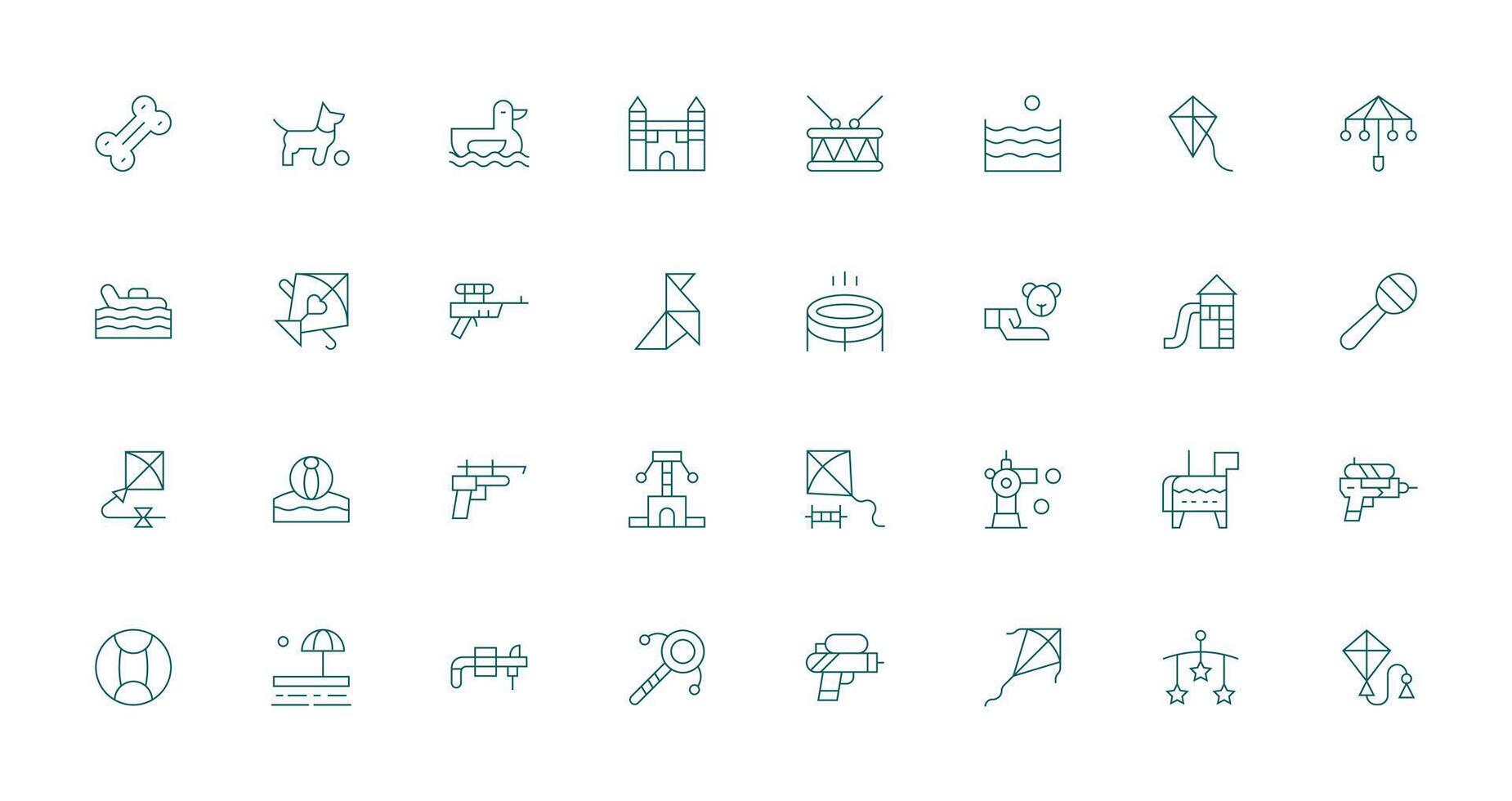 Toy Design Icons featuring 32 in Thin Line Style High-Resolution Icons for Any Platform vector