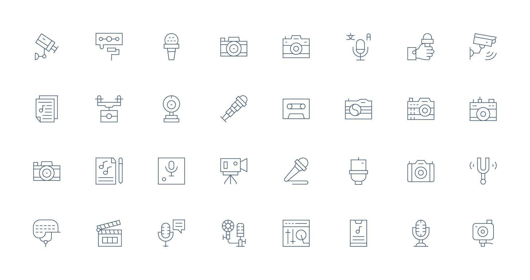 Thin Line Icons from Recording Set with 32 Vectors Balanced Icon Set for Functional Design Free Vector