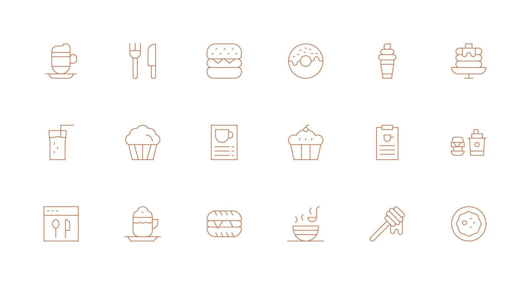 Cafe Menu Design Icons featuring 18 in Minimal Line Style Interface Icon Collection for Daily Projects Free Vector