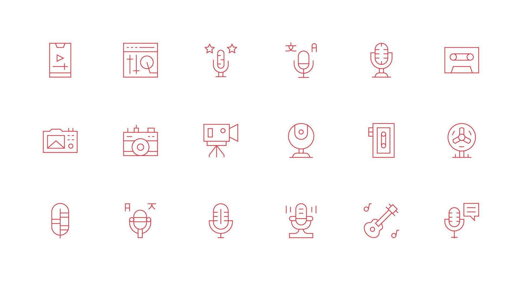 Recording Icon Set with 18 Minimal Line Graphics Icon Set Free Vector