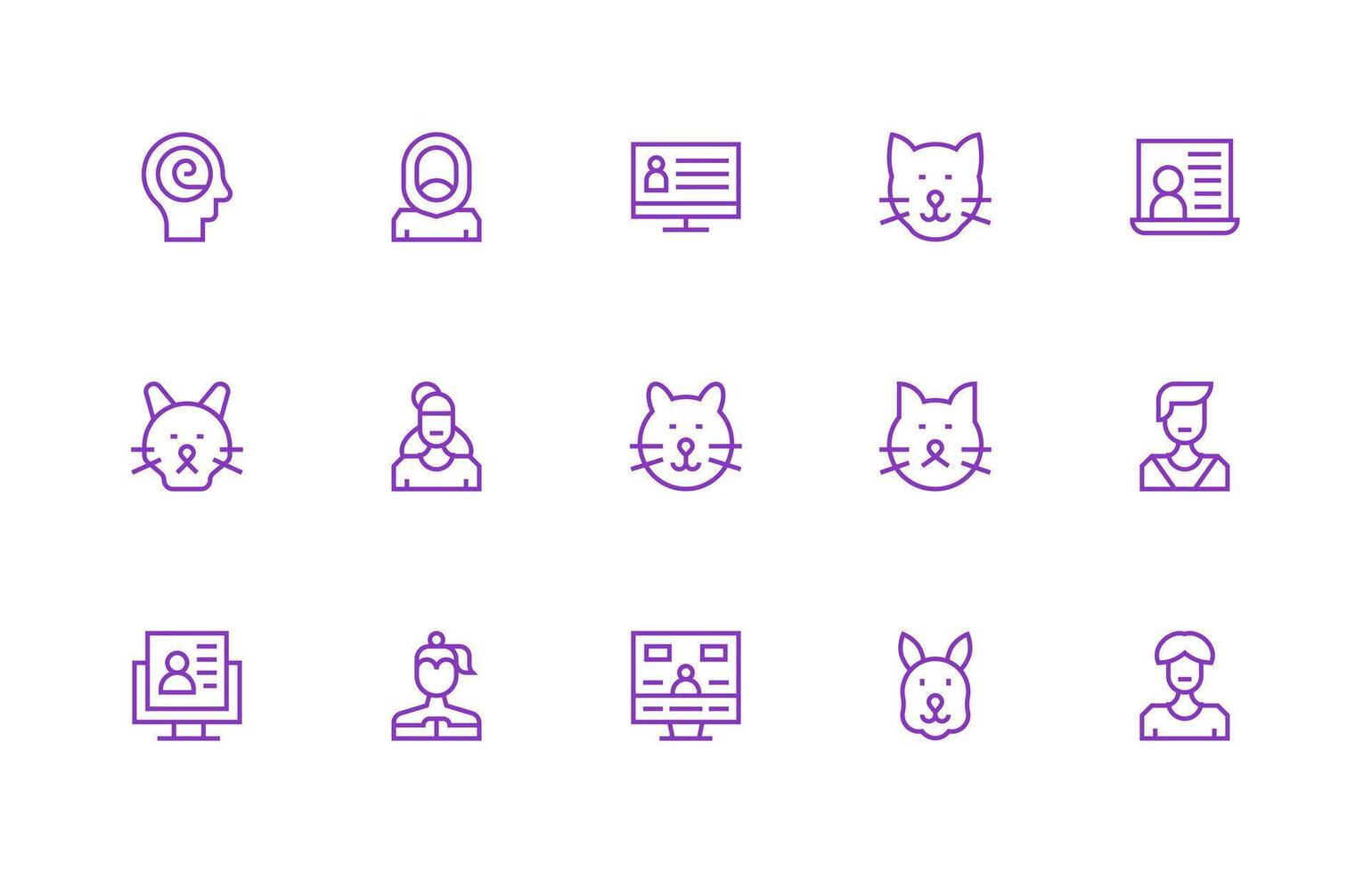 Profile View Icon Set with 15 Regular Line Graphics Multi-Purpose Icon Set vector
