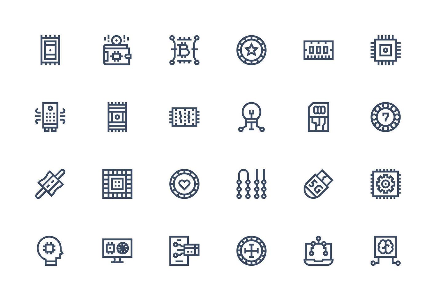 Chip Icon Set with 24 Thick Line Line Graphics Simple Icons for Interface and Wireframes vector