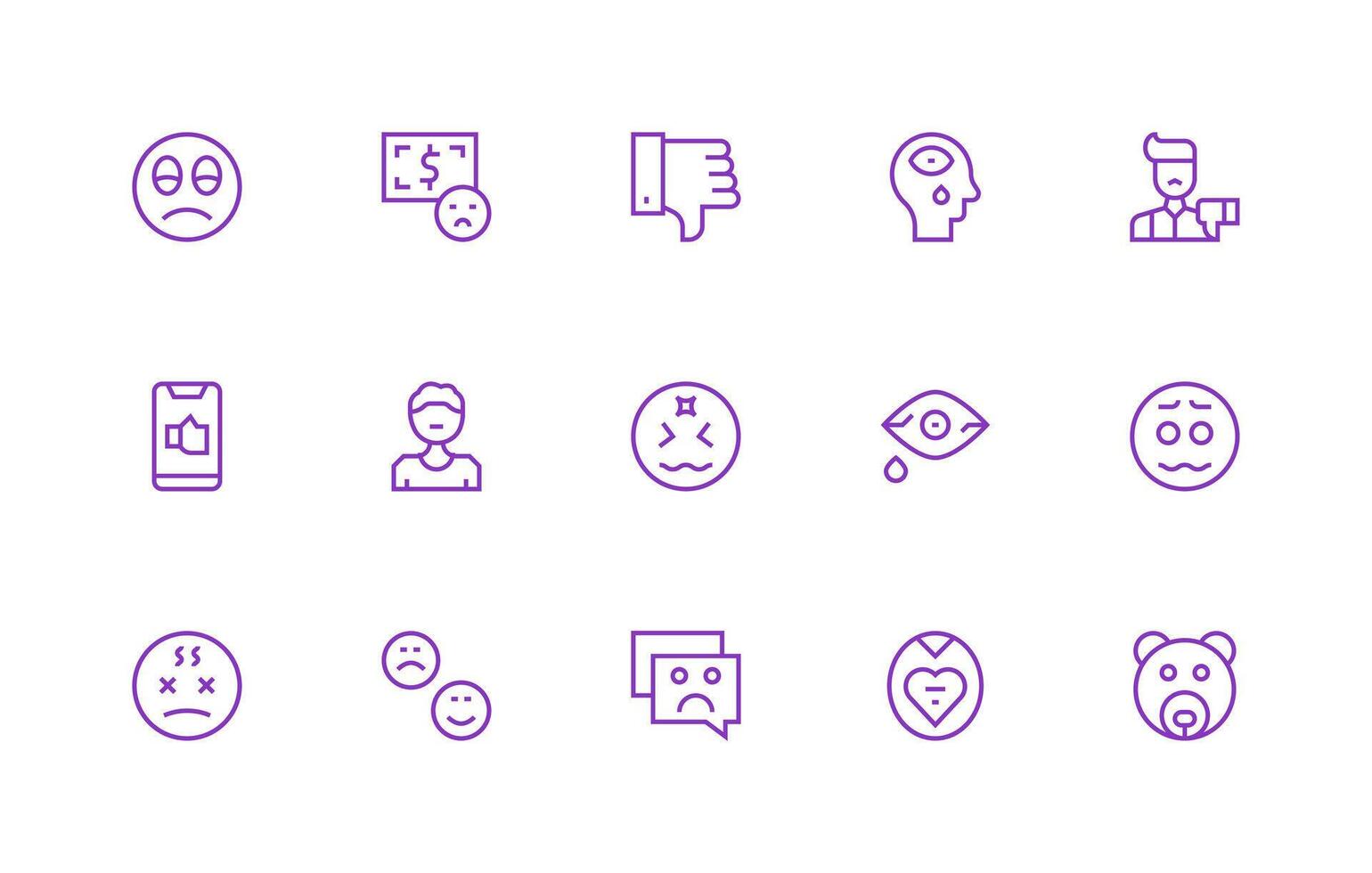 15 Icons for Unhappy in Regular Line Format Neatly Designed Icons for Web Platforms vector