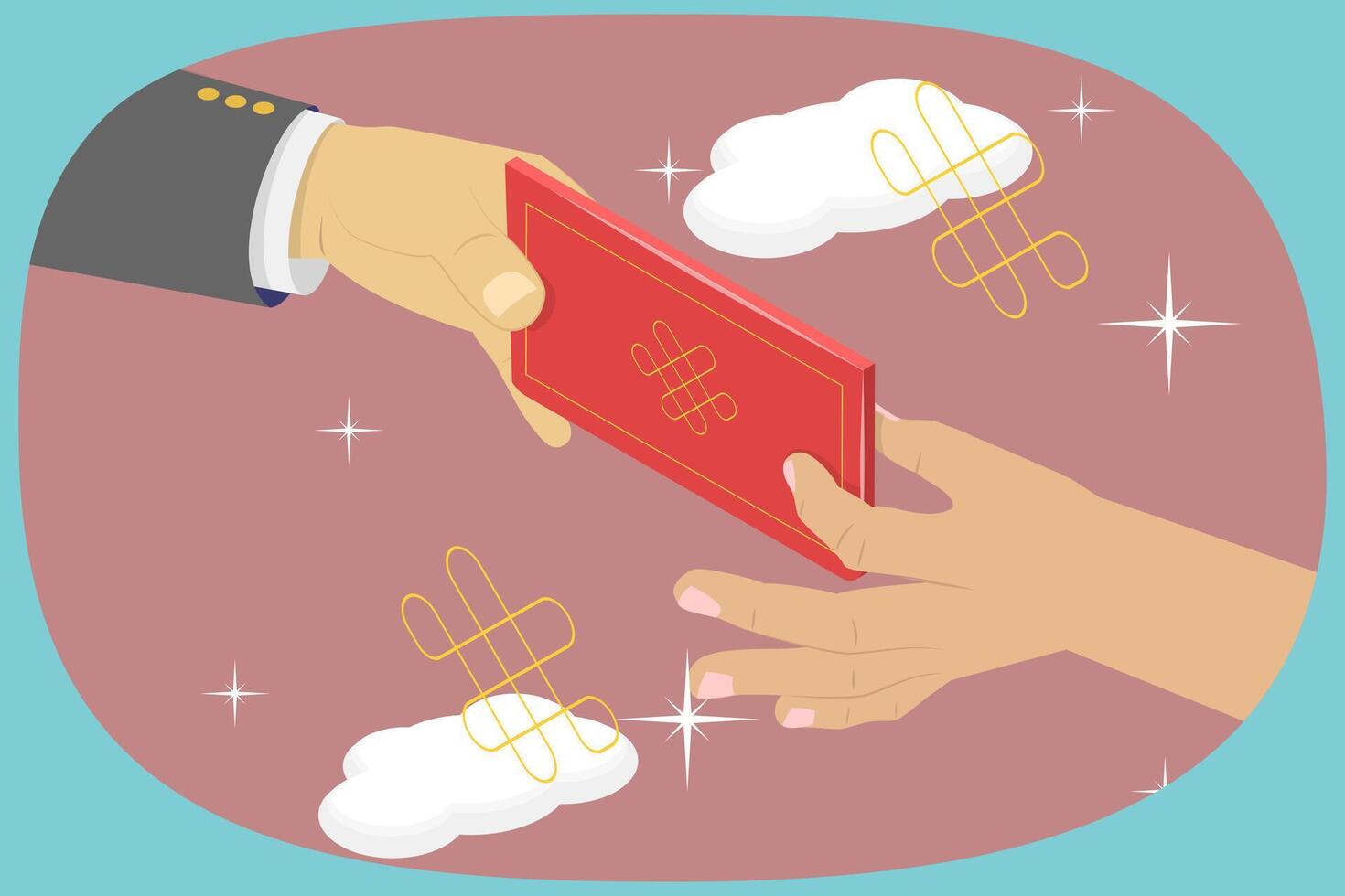 Handing Over a Red Envelope in Business Settings Pro Vector
