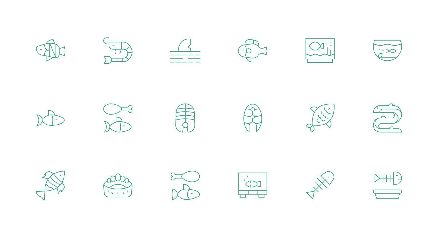 Fish Icon Set with 18 Minimal Line Graphics Multi-Style Icons for Creative Projects Free Vector