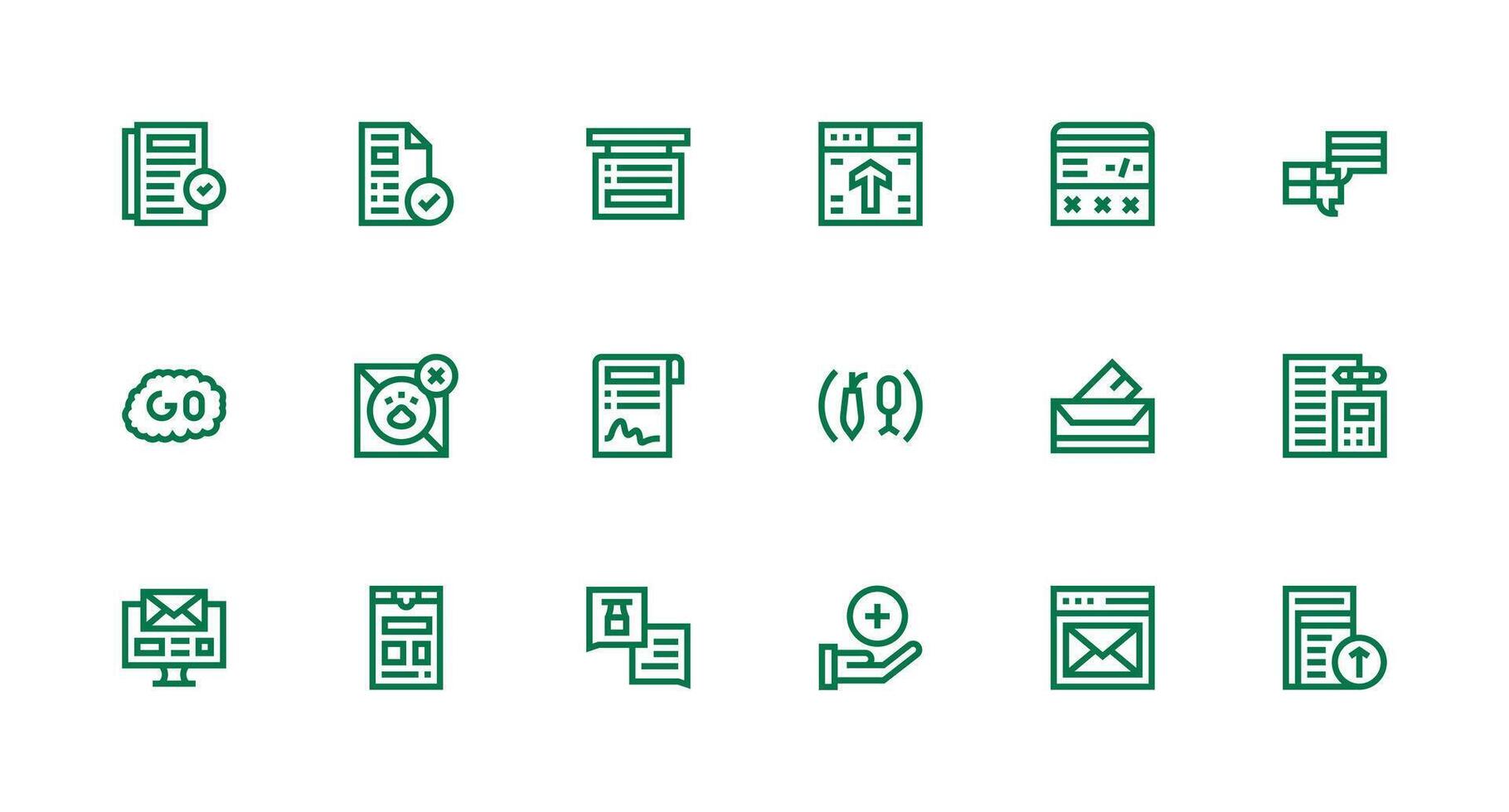 Submit featuring 18 Icons in Strong Stroke Line Design Responsive Icon Set for Flexible Layouts vector