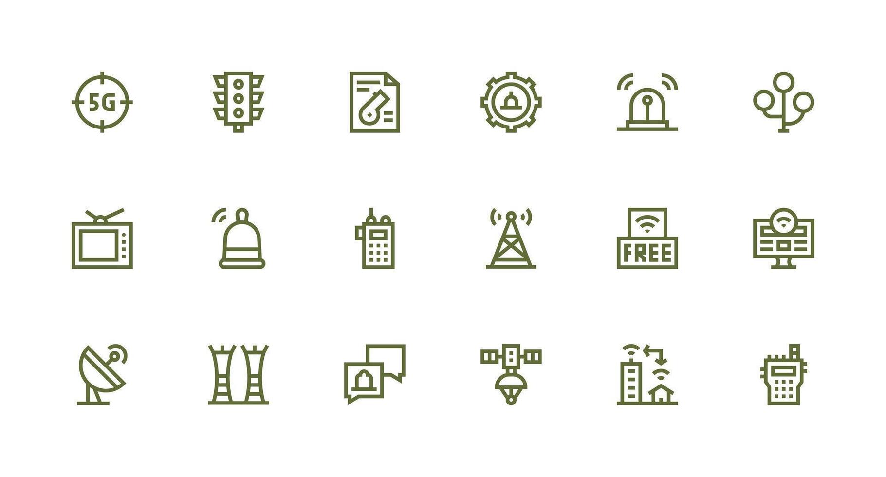 Signal Icon Set with 18 Strong Stroke Line Graphics Customizable Icon Series for Mobile Screens Free Vector