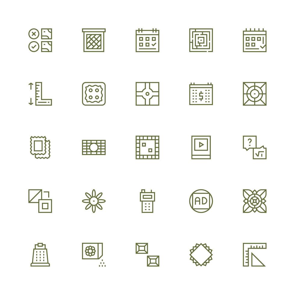 Square Icon Set with 25 Medium Stroke Outline Graphics Icon Set for Apps Free Vector