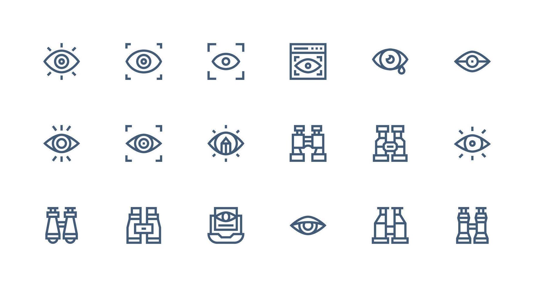 Observe Icon Set with 18 Strong Stroke Line Graphics Smart Icon Collection vector