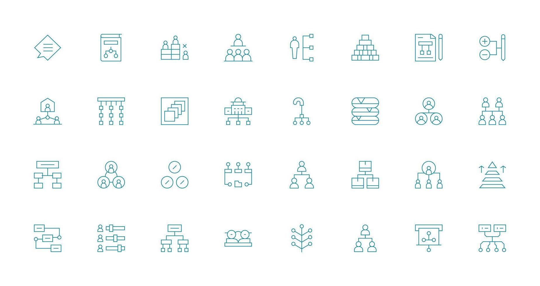 Hierarchy Icon Set with 32 Thin Line Graphics Icon Set for Web vector