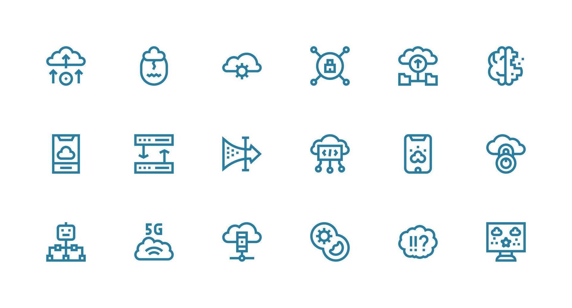 Cloud Computing Design Icons featuring 18 in Strong Stroke Line Style Digital Icon Collection Free Vector