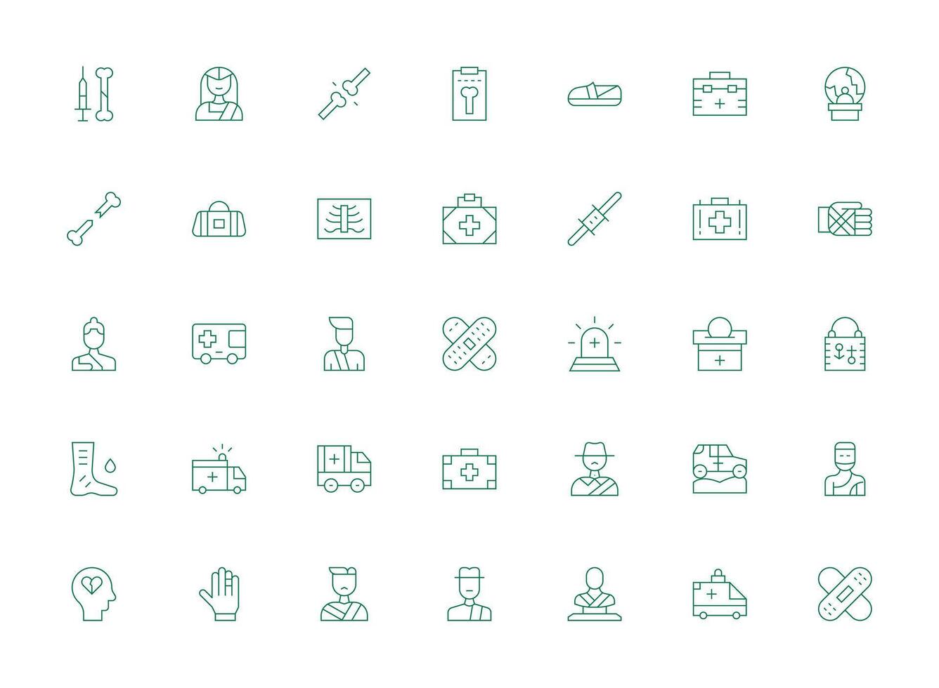 Light Line Style Trauma Icons with 35 Vectors Icons Built for Visual Consistency Pack Free Vector
