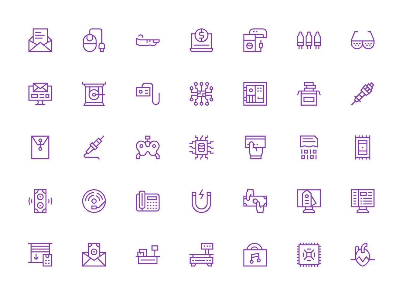 Regular Clean Line Icons from Electronic Set with 35 Vectors Well-Structured Icons for Creative Use Free Vector
