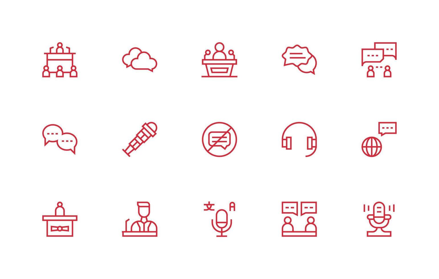 Regular Line Style Talk Icons with 15 Vectors Clear and Concise Icon Set Collection