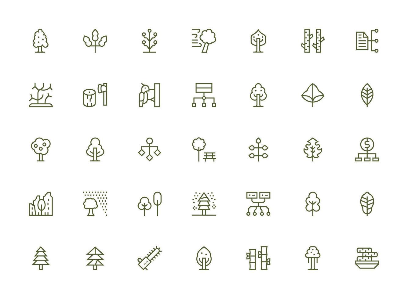 Tree Icon Set with 35 Regular Clean Line Graphics Clear and Concise Icon Set Collection Free Vector