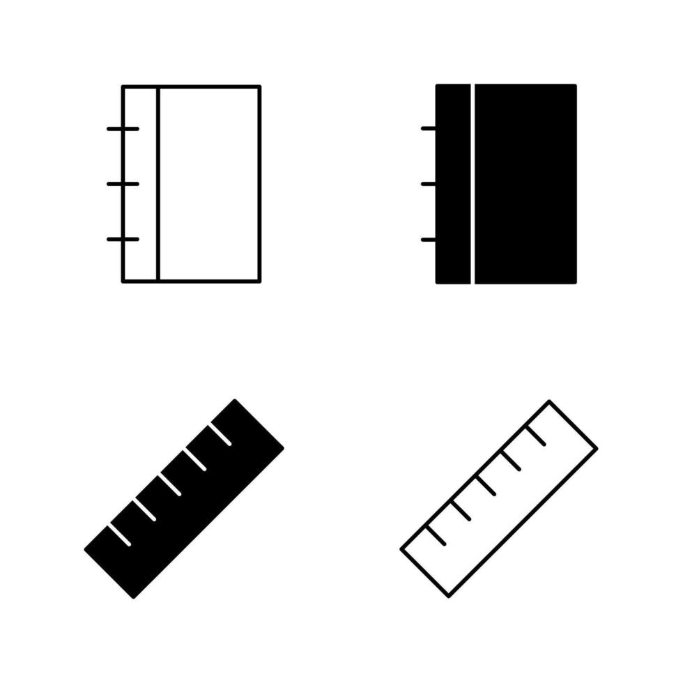 Notebook and Ruler Icons in Solid and Line Style Pro Vector