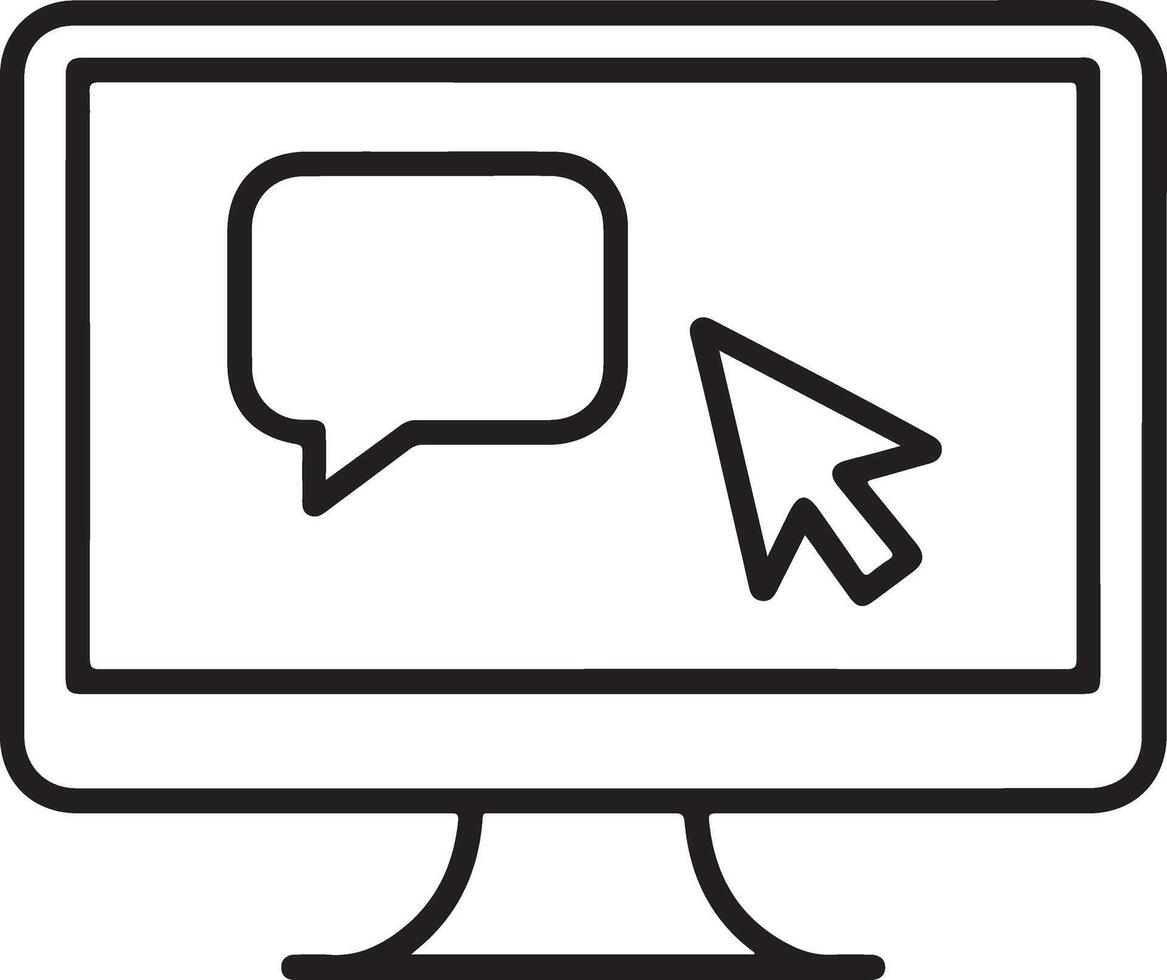 Computer screen with a speech bubble and cursor icon representing online communication and messaging Pro Vector