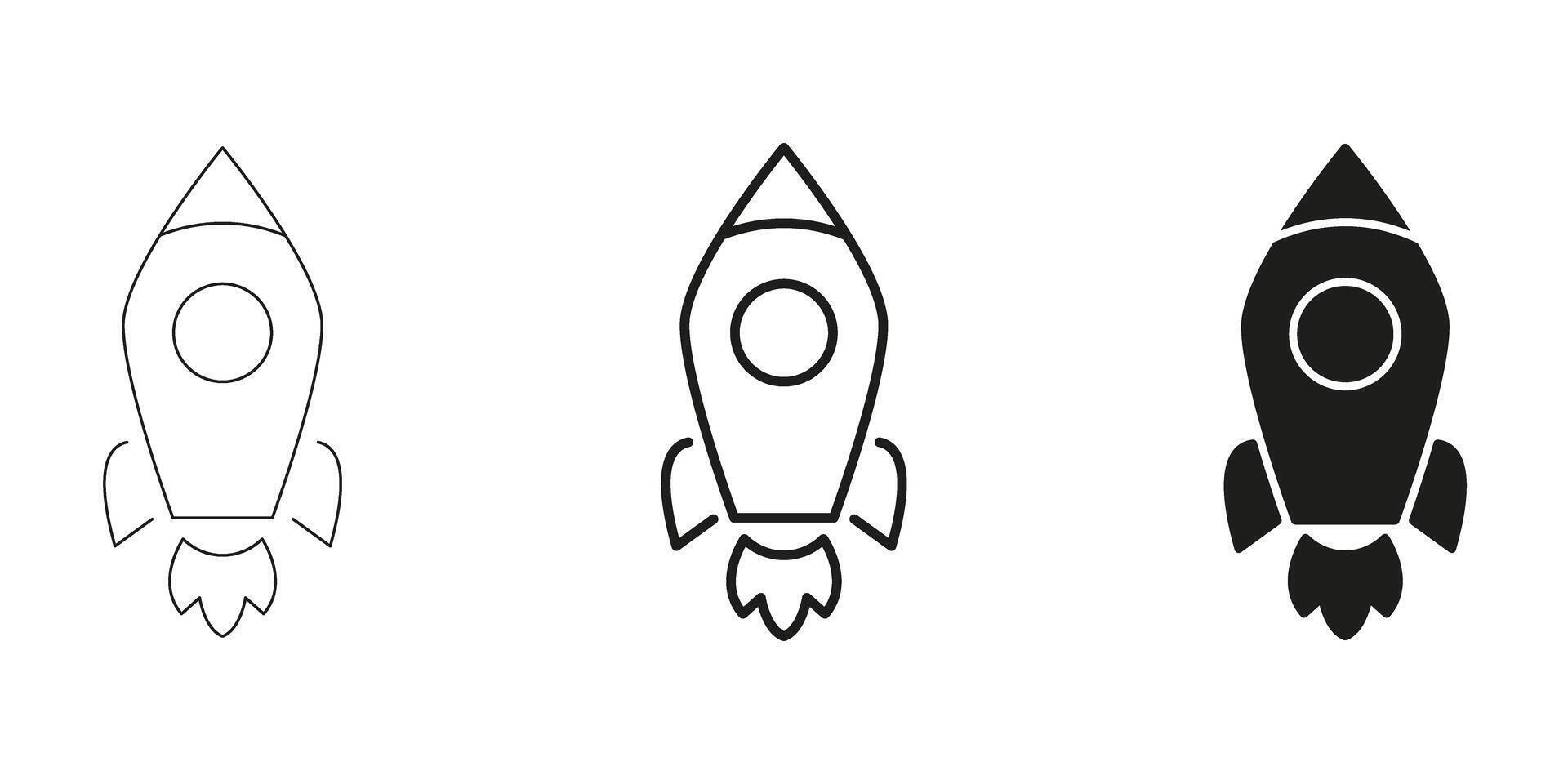 Rocket Launch In Line, Outline, And Glyph Icon Set. Space Exploration, Innovation, And Startup Growth Symbol Collection. Technological Advancement. Isolated Illustration Pro Vector
